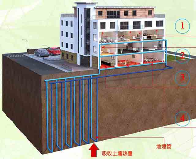 - 普通中央空調(diào)缺點在于天氣炎熱或者寒冷需要制冷量或熱量時效率反而下降。地溫一年四季基本恒定在14度左右,略高于地區(qū)平均溫度1-2度,使得熱泵無論在制冷或制熱工況中均處于穩(wěn)定運行狀態(tài)。